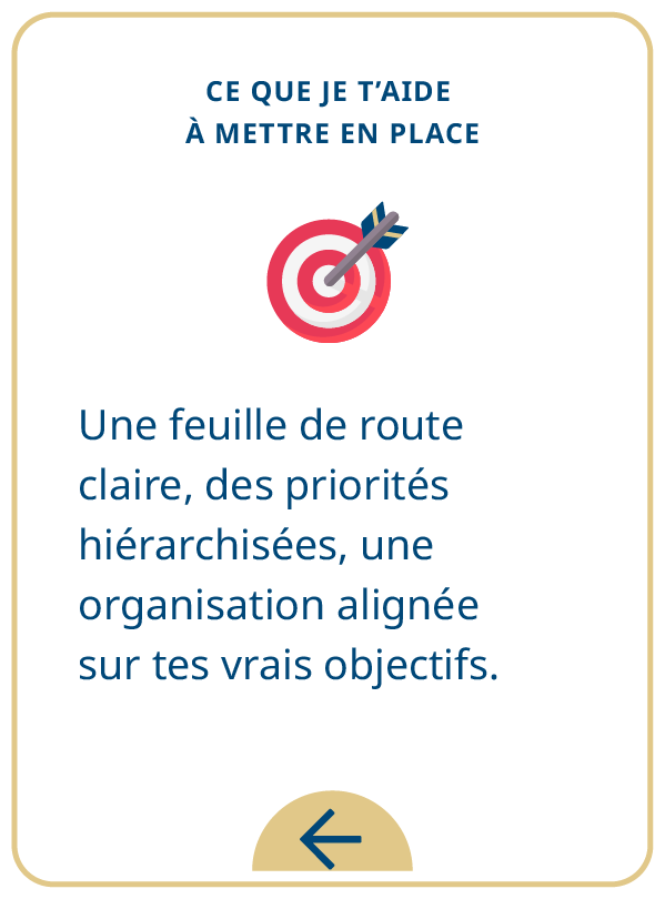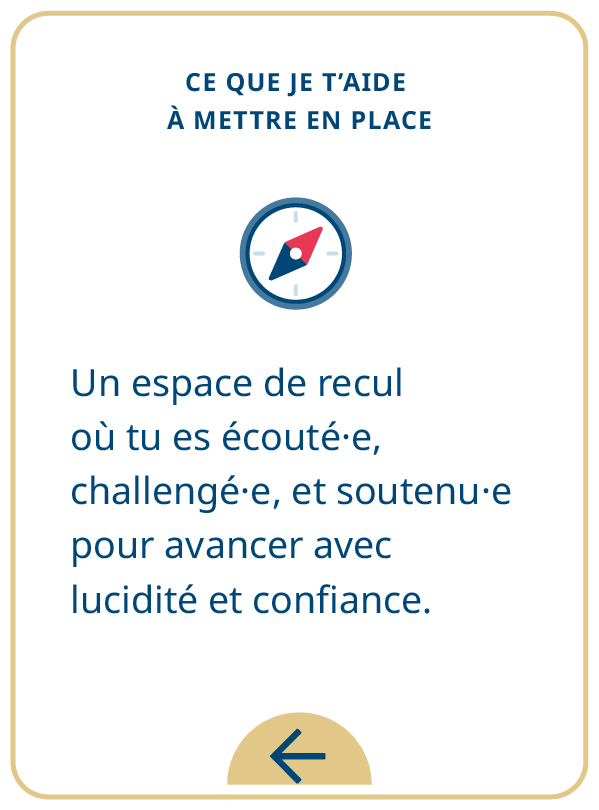 Ensemble, nous allons leur donner du sens, les transformer en actions claires et les aligner avec vos valeurs. Les cartes qui suivent illustrent ces situations concrètes que je rencontre souvent dans mes accompagnements.