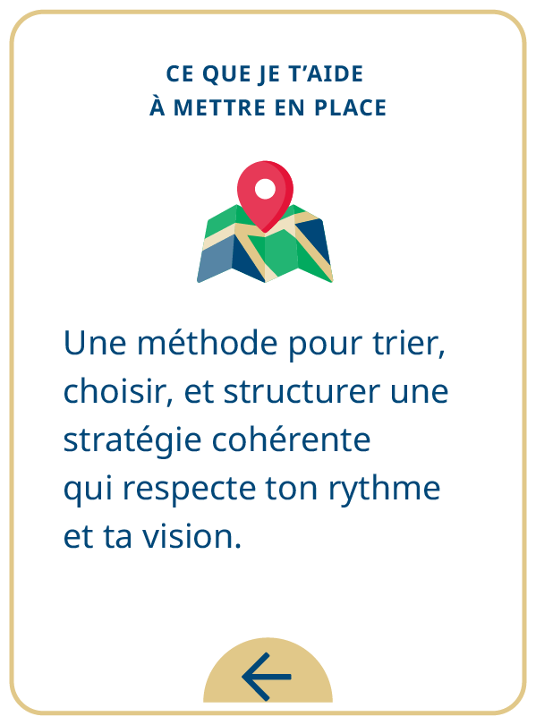 Nous co-construisons des stratégies ancrées dans la réalité, alignées avec qui tu es, avec ce que tu veux vraiment faire vivre à travers ton entreprise.